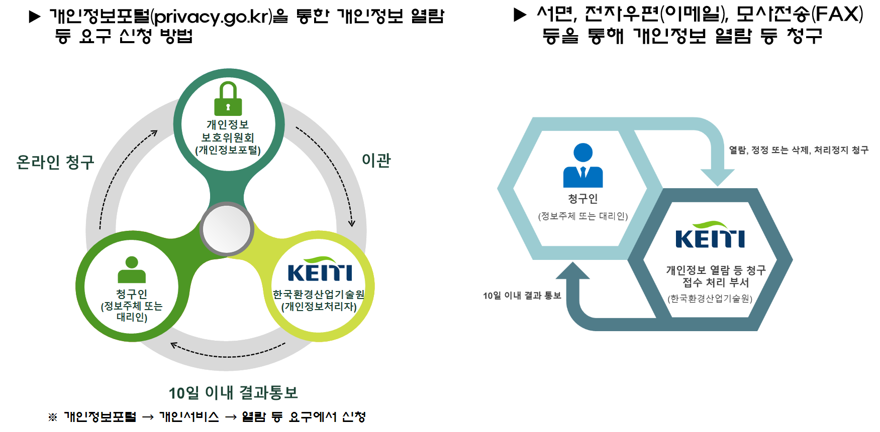 ※ 14세 미만 아동에 관한 개인정보의 열람등 요구는 법정대리인이 직접 해야 하며, 14세 이상의 미성년자인 정보주체는 정보주체의 개인정보에 관하여 미성년자 본인이 권리를 행사하거나 법정대리인을 통하여 권리를 행사할 수도 있습니다.